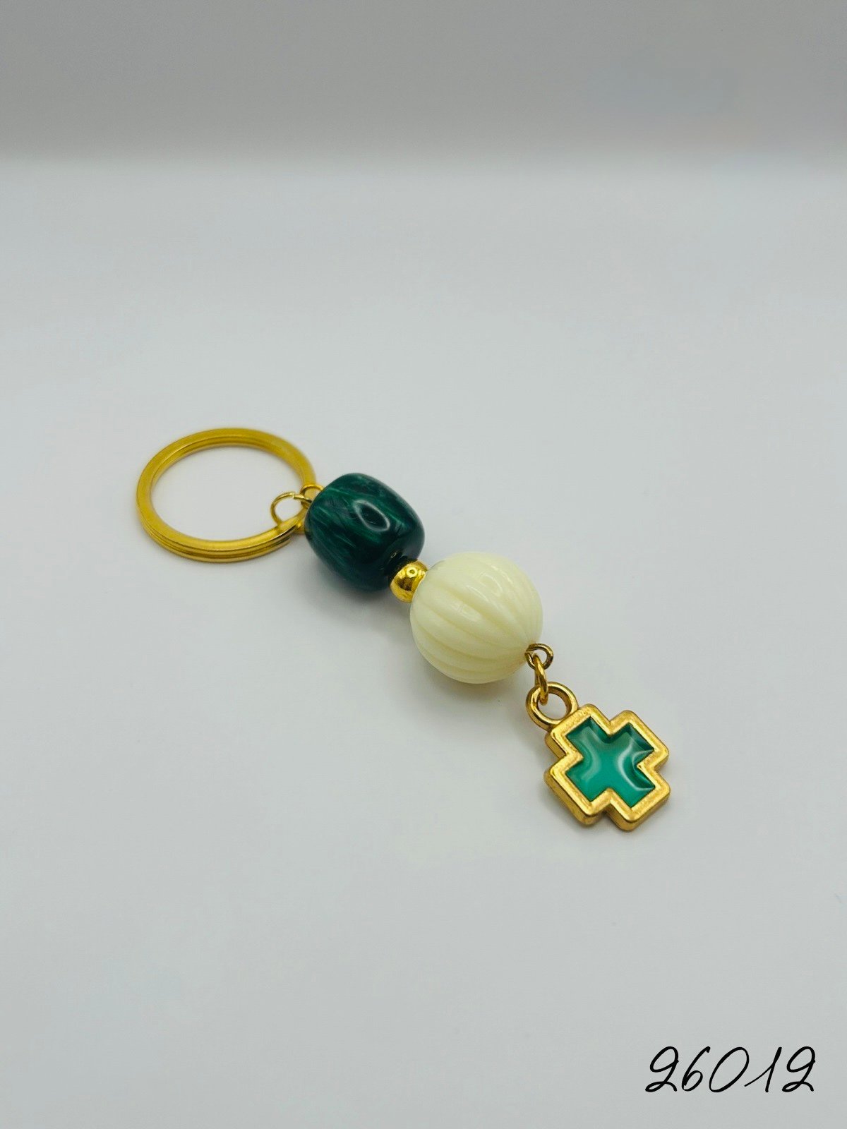 Μαρτυρικό μπρελόκ με λάδι χάντρα κύλινδρο, εκρού χάντρα και σταυρό διάφανο βεραμάν.
