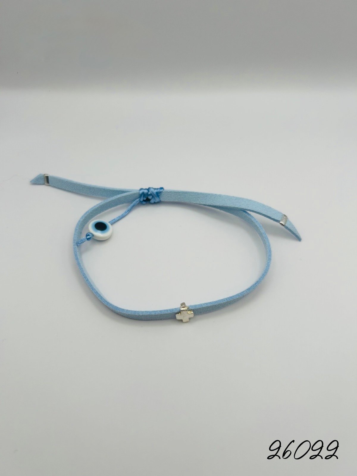 Μαρτυρικό βραχιόλι με σουέτ κορδόνι και κρεμαστό ματάκι.