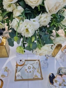 Ο στολισμός του γάμου με θέμα τα λευκά τριαντάφυλλα αποπνέει μια αίσθηση κομψότητας, καθαρότητας και ρομαντισμού. Το ζευγάρι επέλεξε λευκά τριαντάφυλλα. Τα λευκά τριαντάφυλλα ως σύμβολο της αθωότητας και της αγνότητας, αποτελούν την τέλεια επιλογή για ένα γάμο που θέλει να αναδείξει την αγάπη και τη σύνδεση μεταξύ των νεονύμφων.