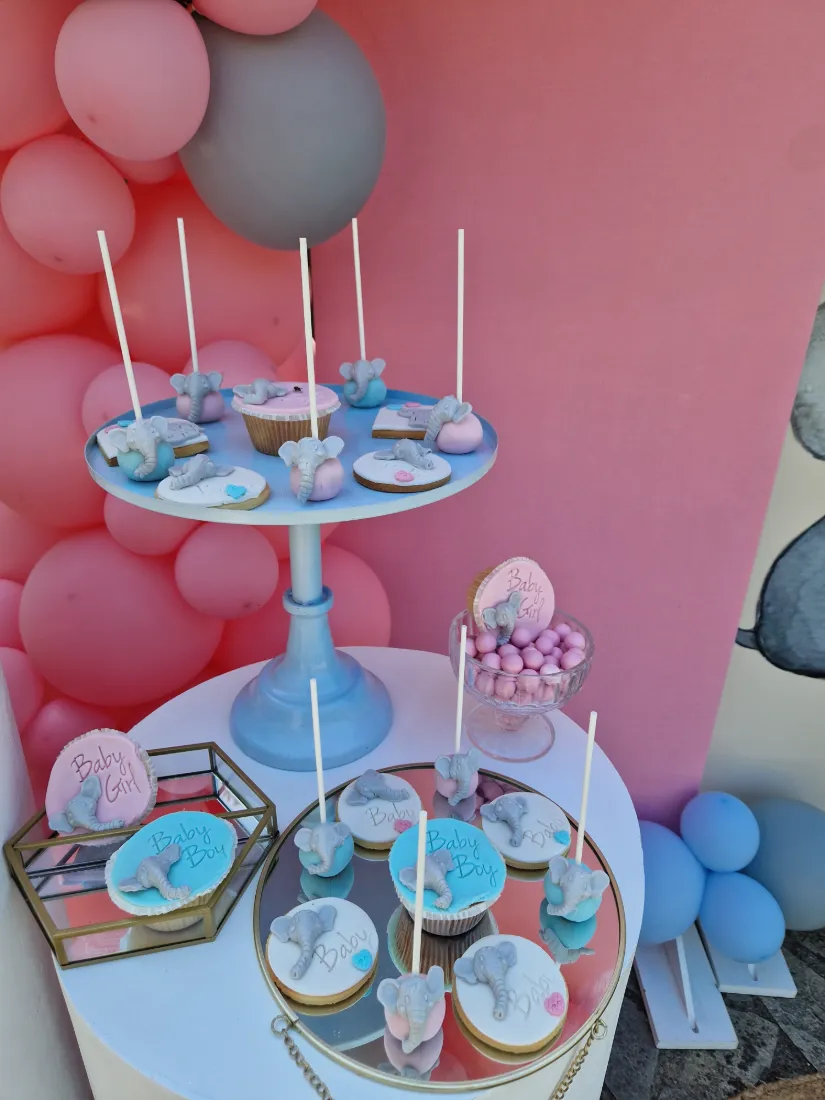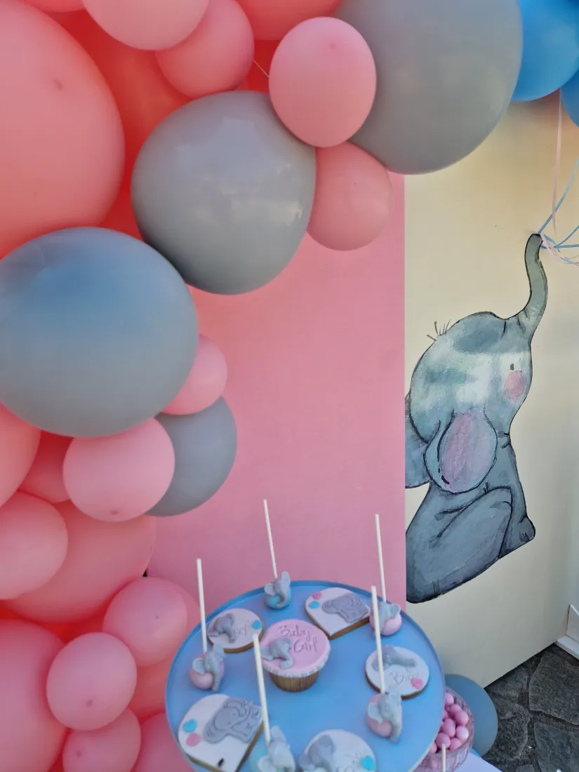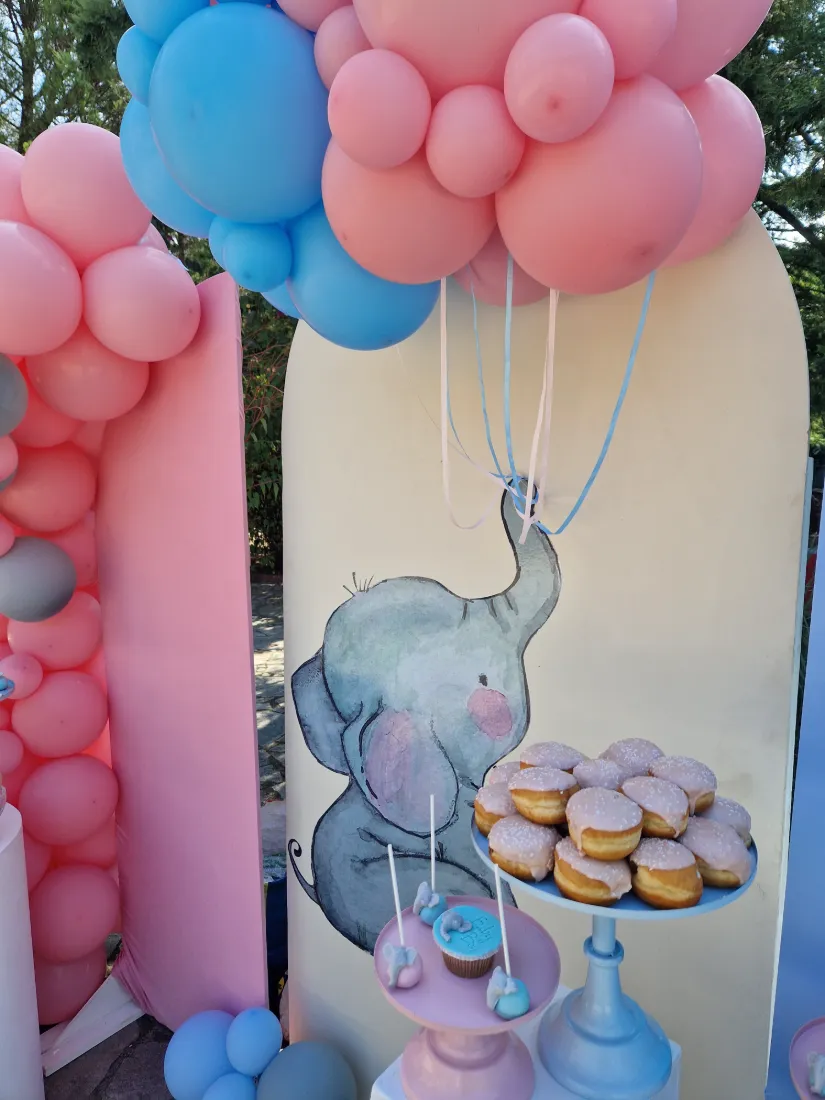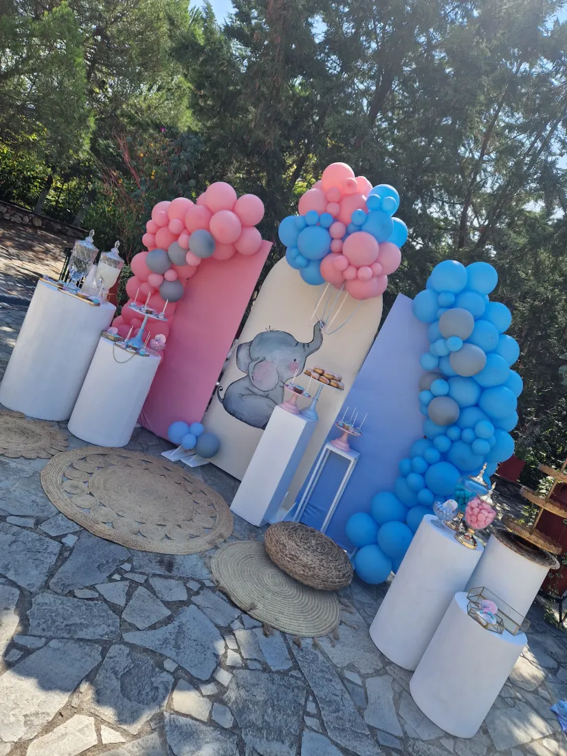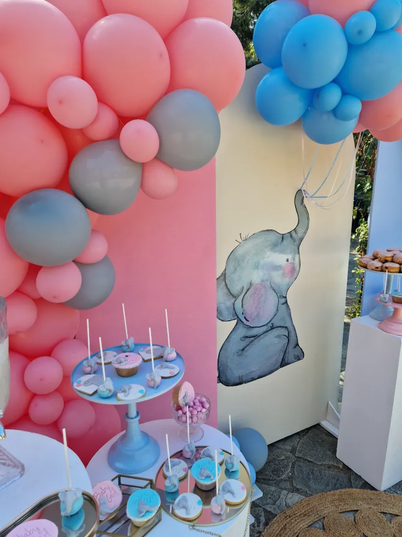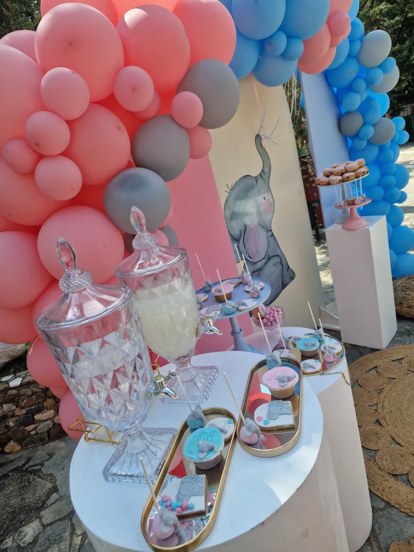 Στολισμός βάπτισης ελεφαντάκι. Η μανούλα επέλεξε ως θεμα βάπτισης το ελεφαντάκι για το στολισμό των παιδιών της. Ο συνδυασμός των χρωμάτων ροζ και γαλάζιο είναι ιδανικός για βάπτιση διδύμων ή για βάπτιση όπου συμμετέχουν τόσο αγόρια όσο και κορίτσια. Τα δύο χρώματα συνδυάζονται τέλεια, προσφέροντας μια ισχυρή αίσθηση ισορροπίας, τρυφερότητας και γλυκύτητας.