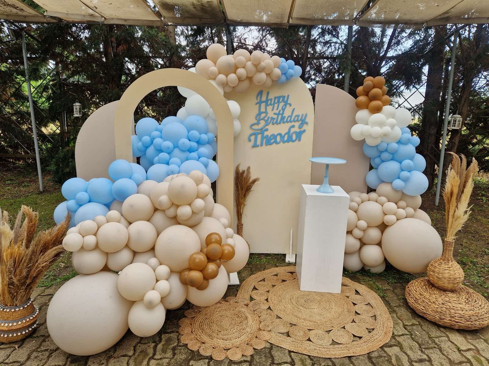Στολισμός γενεθλίων για αγόρι. Γαλάζιο και Μπεζ Παλέτα είναι μια υπέροχη επιλογή για να δημιουργήσουμε μία κομψή και χαρούμενη ατμόσφαιρα.