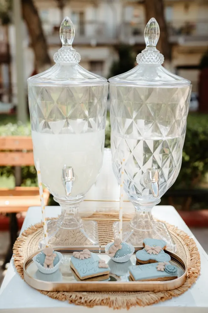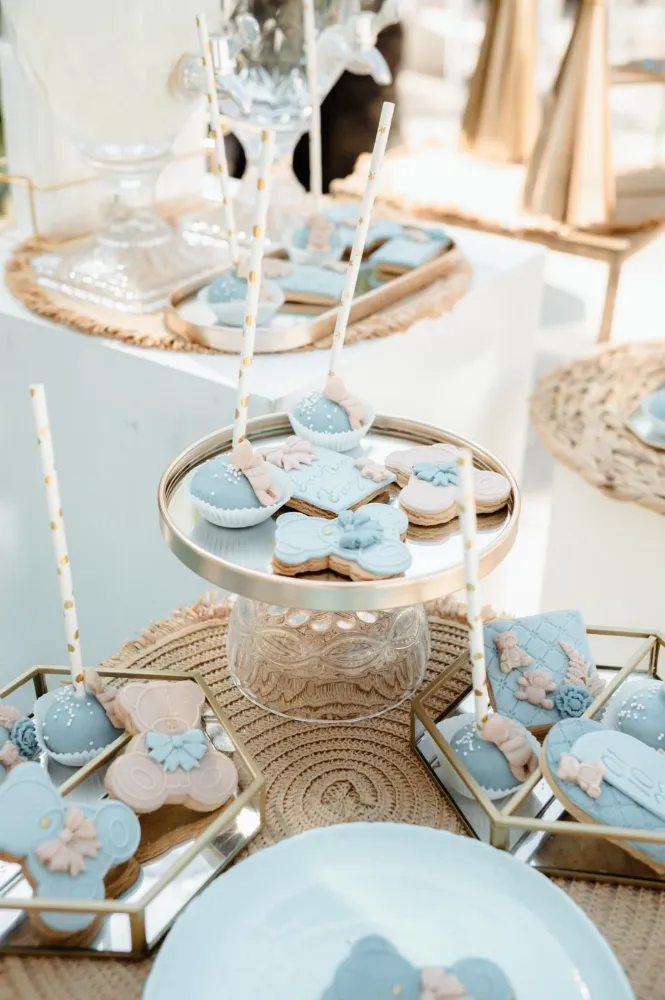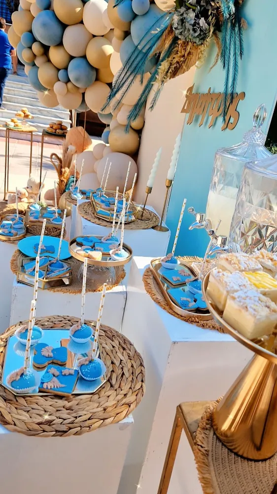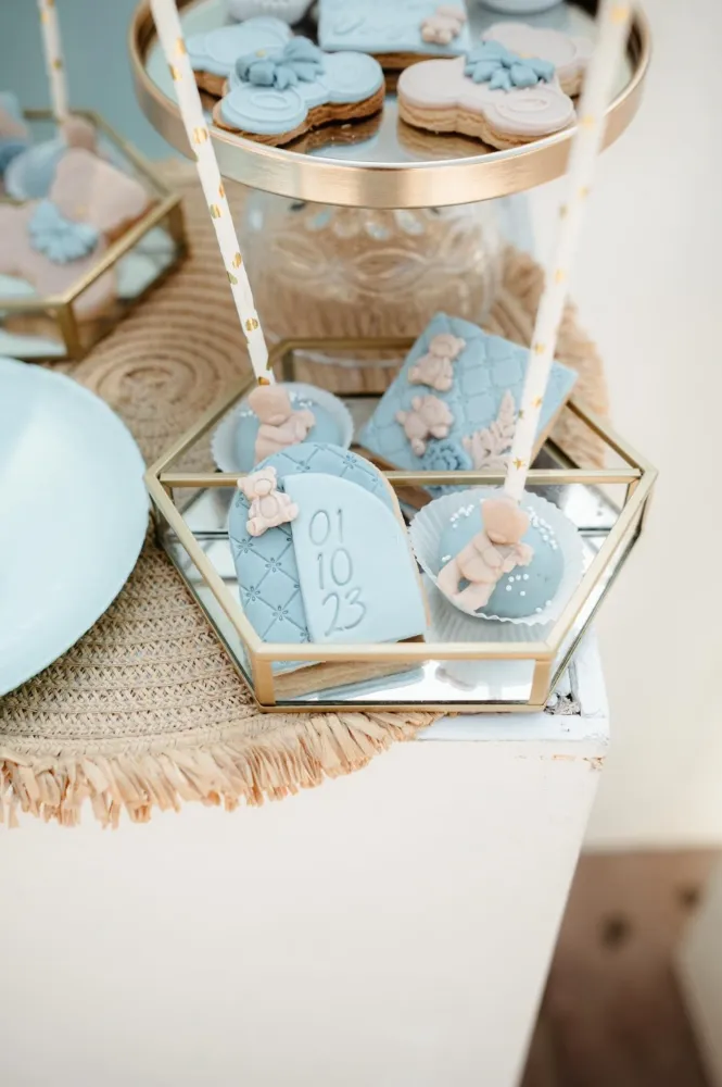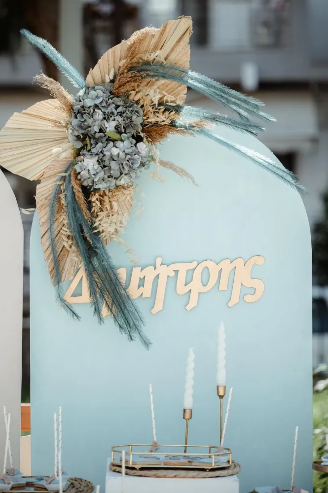 Το χρώμα της μέντας προσφέρει φρεσκάδα, ενώ το αρκουδάκι και το αερόστατο προσθέτουν παιχνιδιάρικη και ρομαντική διάθεση. Υπέροχα γλυκά σε σχήμα αρκουδάκι, boho στοιχεία και μπαλόνια σε γήινες αποχρώσεις συνθέτουν αυτό το μοναδικό αποτέλεσμα!