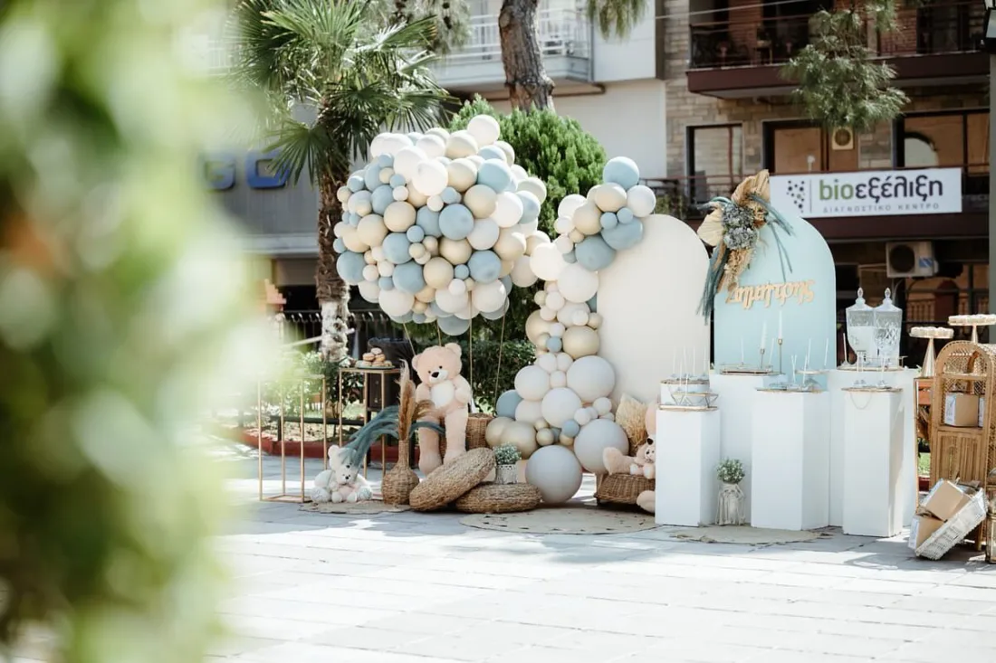 Στολισμός βάπτισης αρκουδάκι αερόστατο