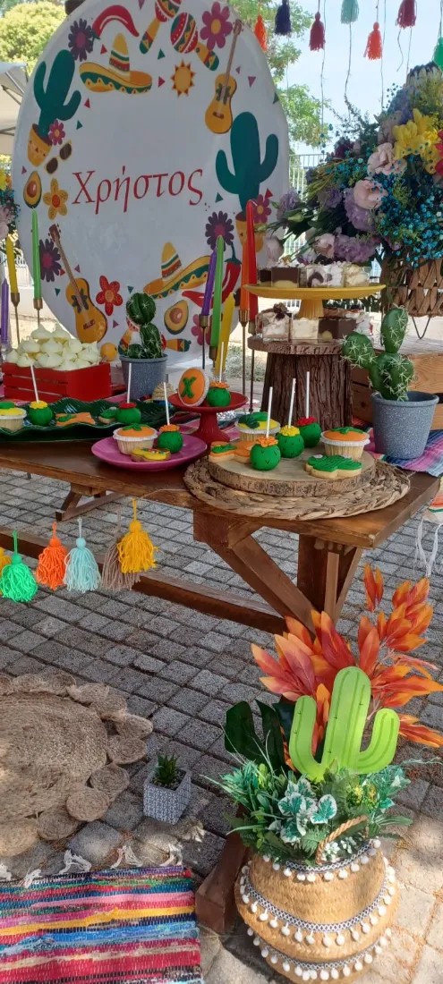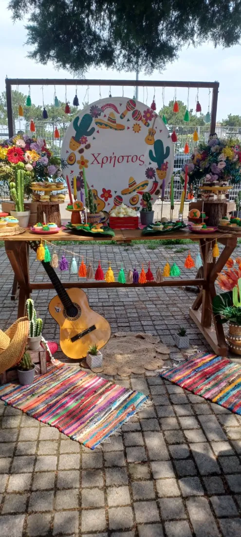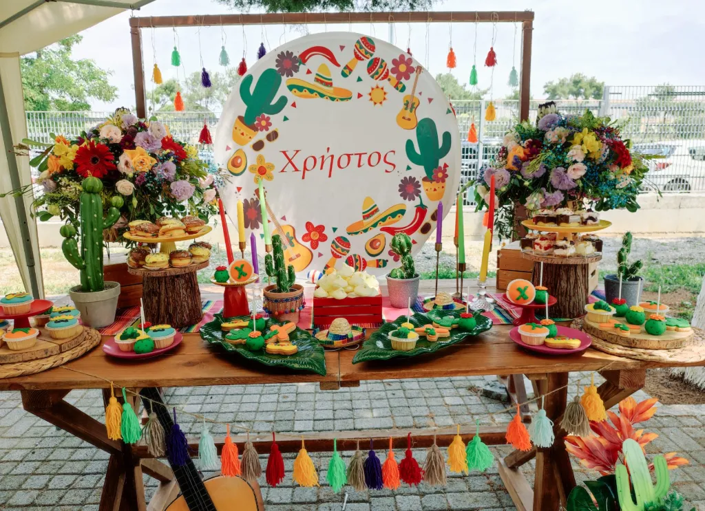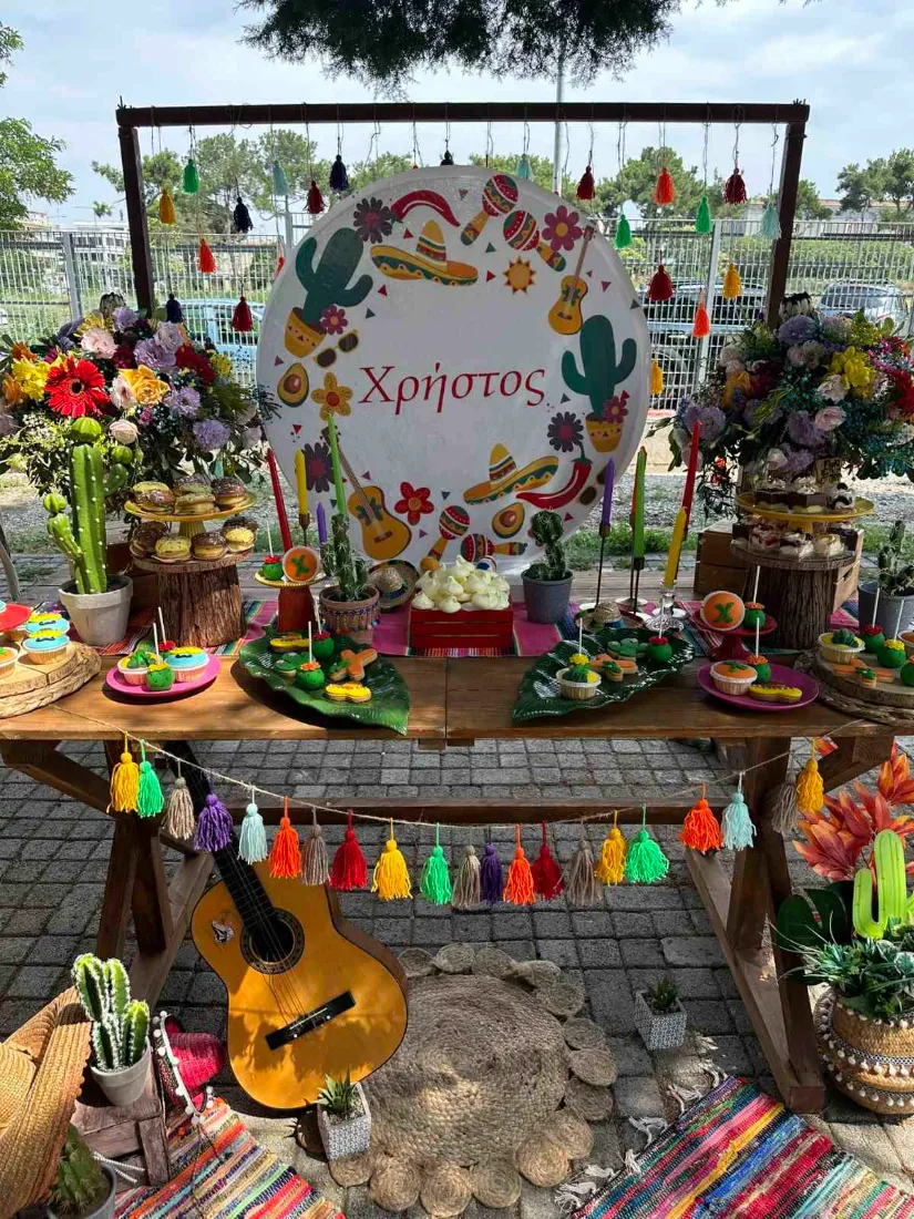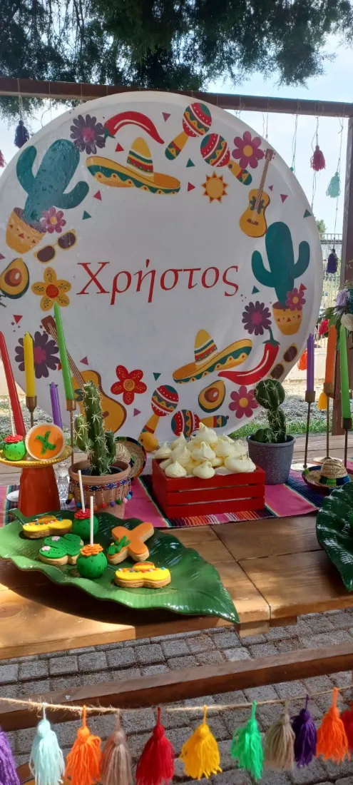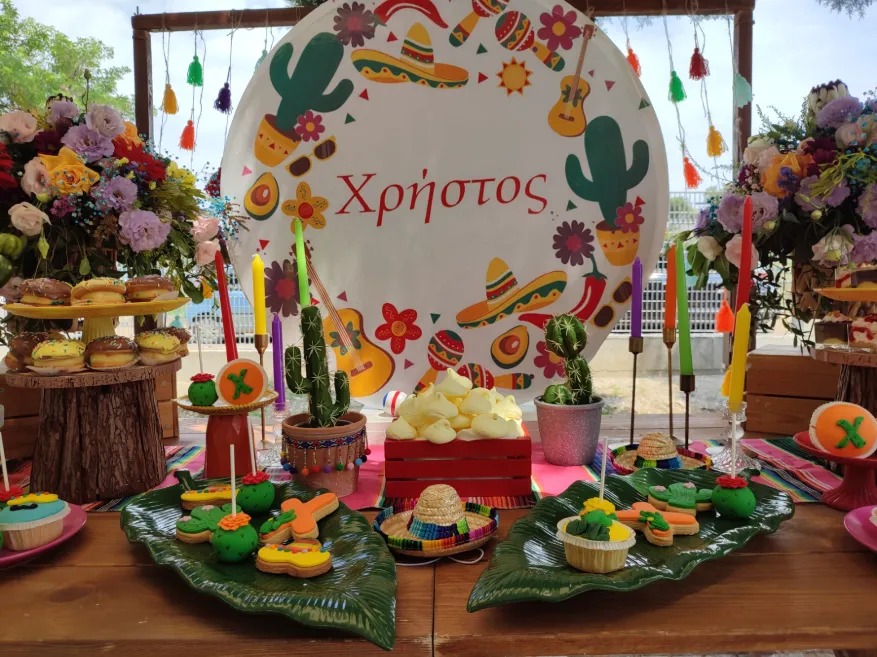 Στολισμός βάπτισης Μεξικό. Το Μεξικό είναι γνωστό για τις έντονες αποχρώσεις του, τα λουλούδια, τις παραδοσιακές διακοσμήσεις και τη μοναδική κουλτούρα του. Ο στολισμός βάπτισης με θέμα το Μεξικό μπορεί να είναι μια πολύχρωμη και ζωντανή επιλογή, γεμάτη ενέργεια, φως και χαρά!