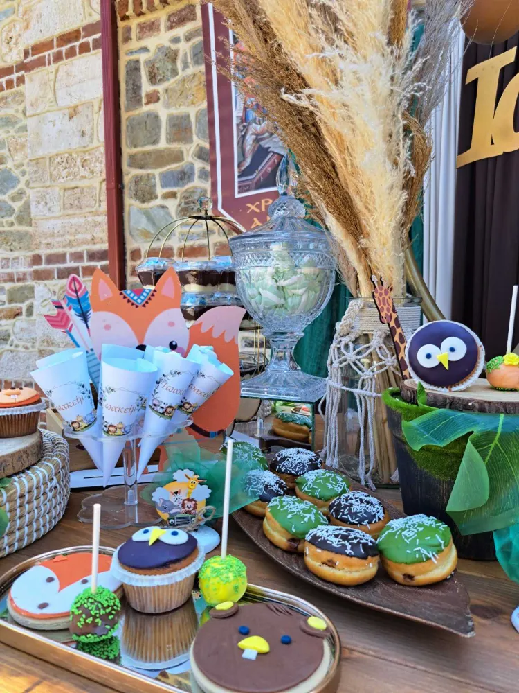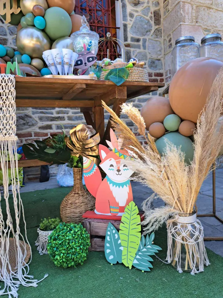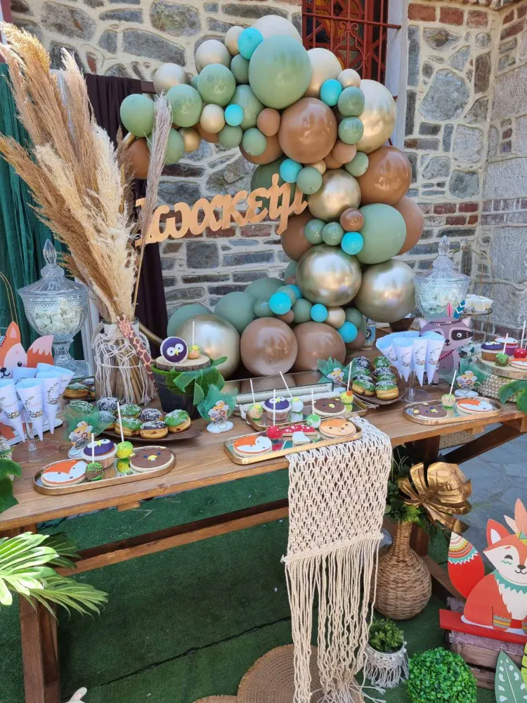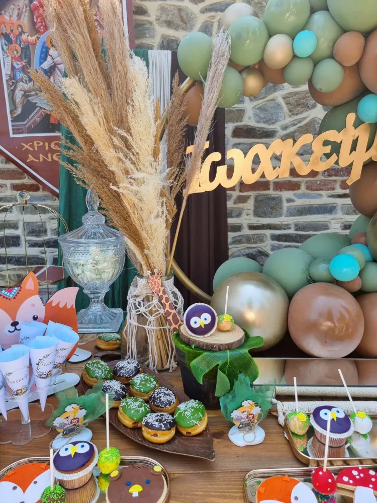 Ο στολισμός βάπτισης με θέμα "Ζωάκια του Δάσους" είναι μια υπέροχη ιδέα για μια γλυκιά και φυσική ατμόσφαιρα. Αυτό το θέμα φέρνει στο μυαλό την ηρεμία και την ομορφιά του δάσους και των μικρών ζώων που το κατοικούν, κάνοντάς το ιδανικό για μια βάπτιση γεμάτη φυσικά στοιχεία, ζεστασιά και αγάπη.